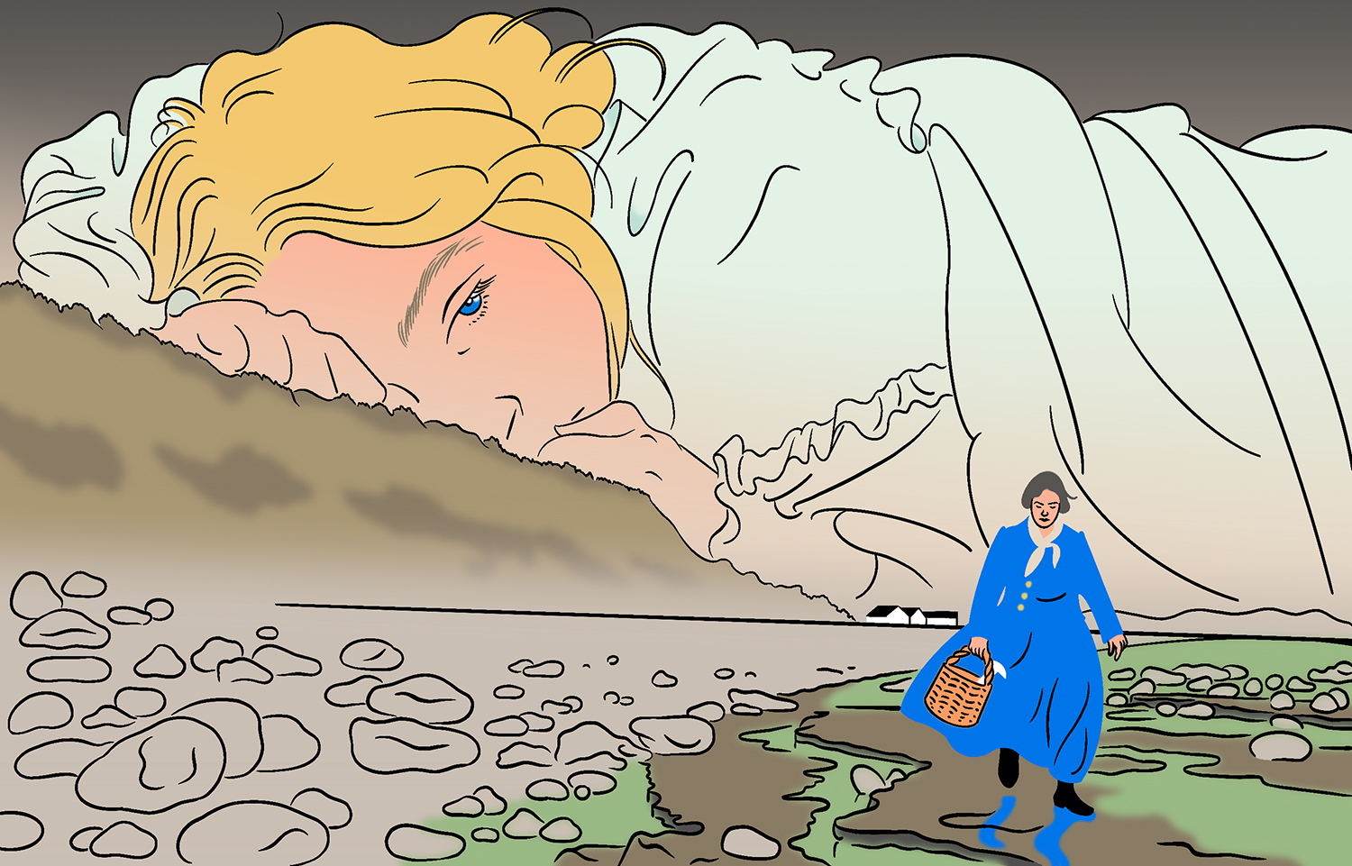 An illustration for The New Yorker. “Ammonite”(2020) review by Anthony Lane.